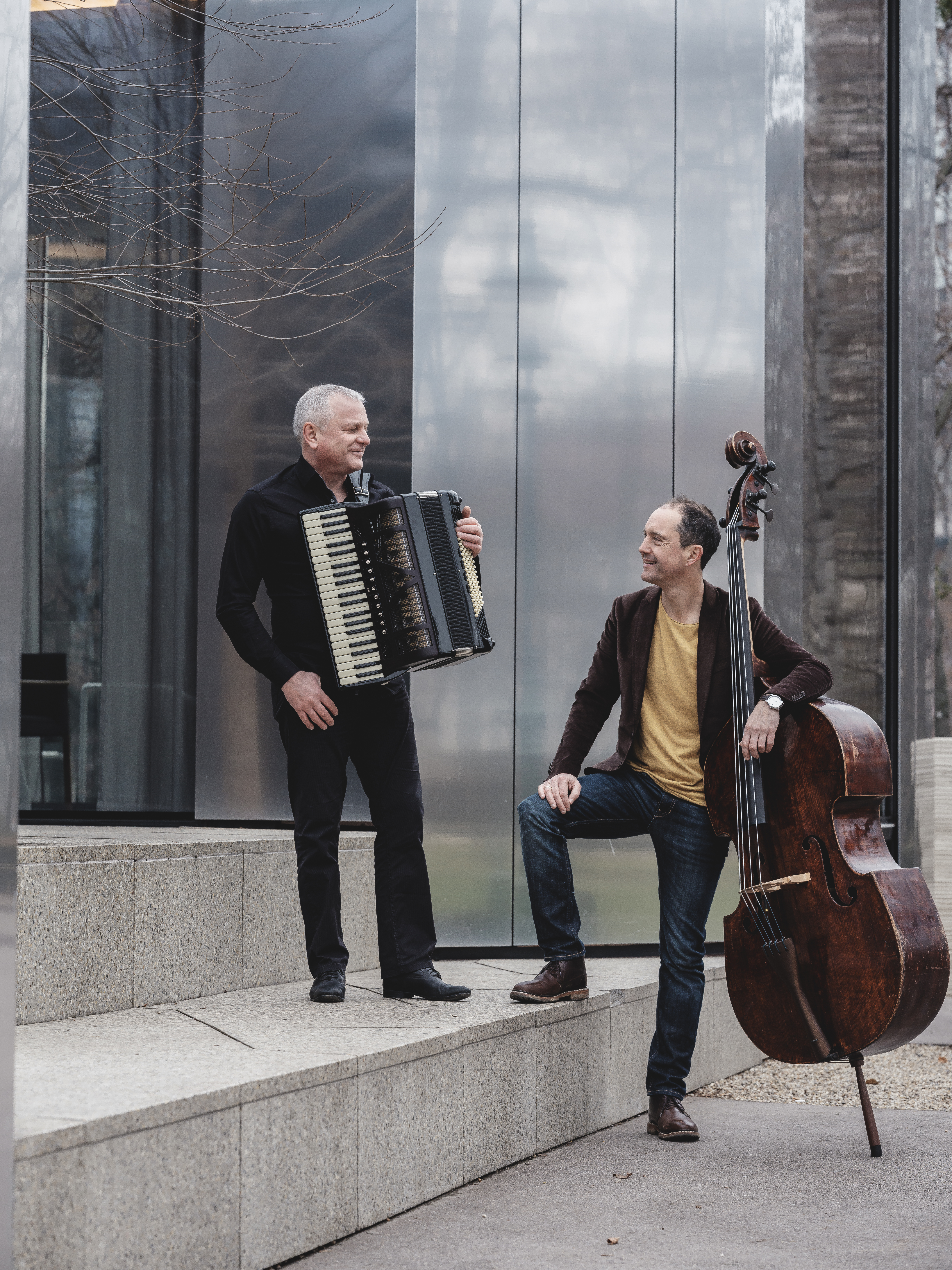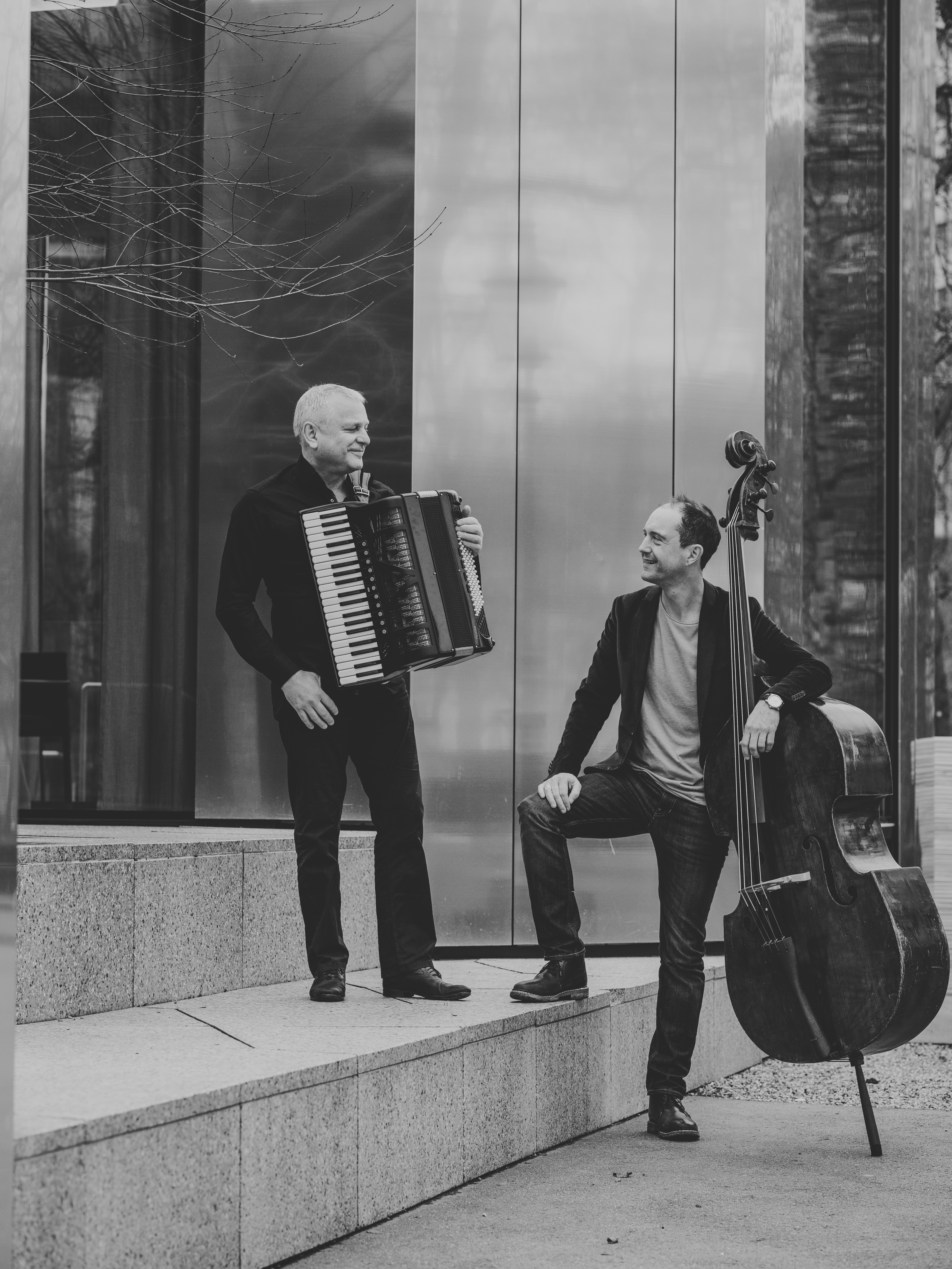 A composing jazz musician - and strictly speaking, that's everyone, since improvisation means “instant composing“ - can draw inspiration from a wide variety of sources: from the characteristics of his instrument, from the music of his predecessors, from experiencing the world, whether as a memory or as a current impression, and more than in any other genre from meeting other musicians. On the first duo album by accordionist Klaus Paier and bassist Florian Dohrmann, one can experience the rare case of everything coming together. As always, Paier immerses himself more sensitively than anyone else in the sound of his bandoneon and his accordion and Dohrmann has a special feeling for the thick strings of his bass - best illustrated by the art object on the album cover, consisting of a bass string and an accordion key. The two virtuosos find their themes in standards by Ellington and Mingus as well as in their own compositions and improvisations. A kaleidoscope of motifs, colours and rhythms reflect their thoughts and feelings. And above it all is the intoxicating flow of their interplay, which can only come from a musical affinity beyond all styles and genres. A duo and an album for which no better title could have been found than: "Inspired Rendevous".